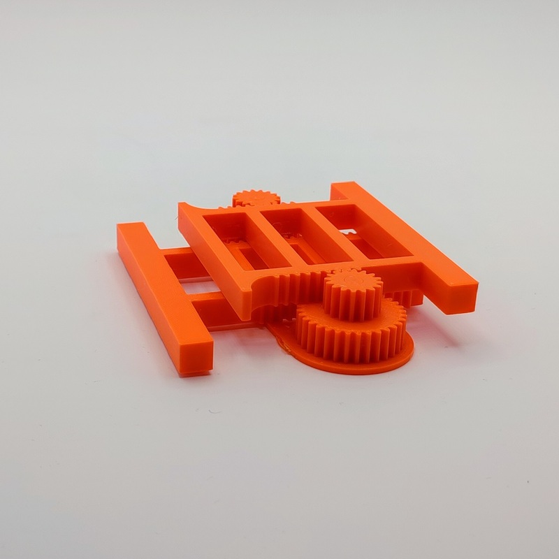 Am Prototypen erkenne ich einige Probleme im Design. Zehn Millimeter Höhe ist viel zu dick, fünf Millimeter reichen völlig. Und ich brauche Führungsschienen, sonst verkanten sich die Einzelteile. Oh, und ein Verhältnis von 1:2 bei den Zahnrädern ist zu wenig, es müssten 1:4 sein.